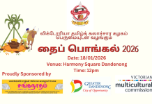 விக்டோரியா தமிழ் கலாச்சார கழகத்தின் Palmyra Hall, 44 Lonsdale Street, Dandenong, Victoria 3175 முகவரியில் இந்த விழா நடைபெற உள்ளது.